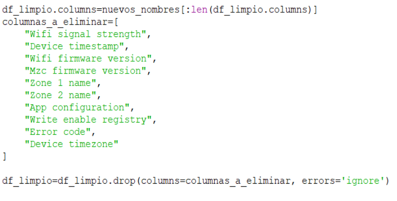 After this first column filtering, and keeping efficiency, energy saving and comfort as the main objectives, further columns (Figure 3) have been removed due to their lack of relevance for the intended analysis. For example, device Firmware Version and Wifi Signal Strength can be used for error prevention or performance of the device, but they have not been considered as essentials for energy efficiency or comfort.